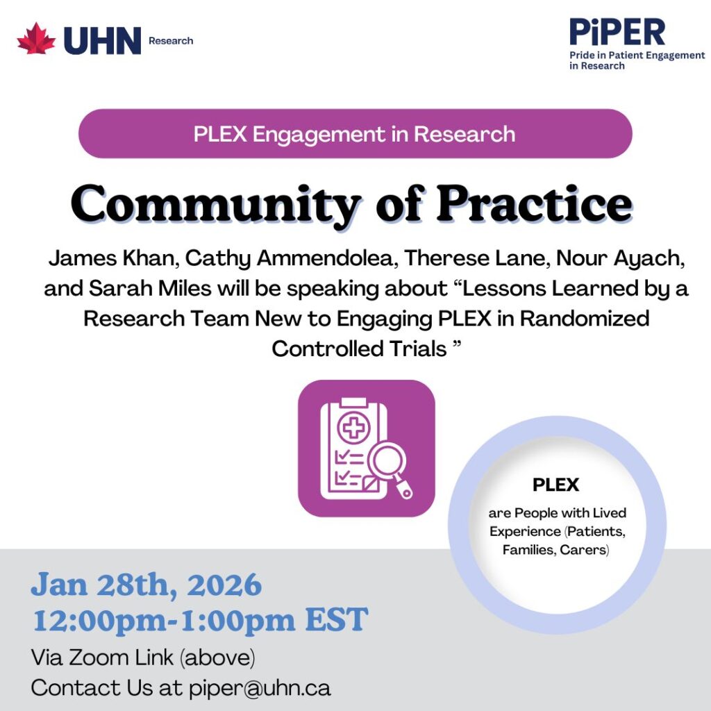 Save the date on *January 28th 2026* from 12-1 pm for a dynamic session titled “Lessons Learned by a Research Team New to Engaging PLEX in Randomized Controlled Trials ”.