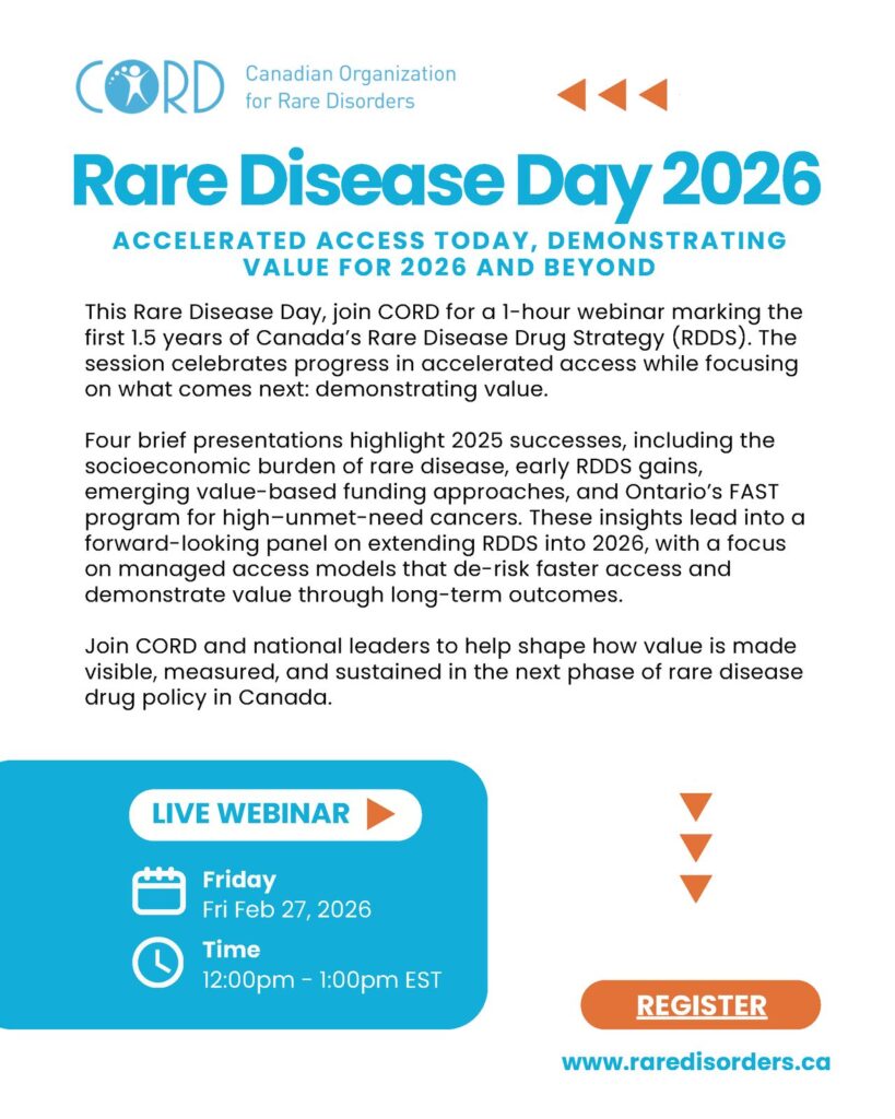 ACCELERATED ACCESS TODAY, DEMONSTRATING VALUE FOR 2026 AND BEYOND This Rare Disease Day, join CORD for a 1-hour webinar marking the first 1.5 years of Canada’s Rare Disease Drug Strategy […]